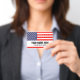 Custom lanyard name badge with United States flag. Plastic tags with metal clip on and lanyard cord option. Customisable text. Add a photo on the back optionally. Useful ID tags for office, volunteer work, events, meeting, gathering, 4th of July party, festival, sports teams, clubs, political delegation and more. USA pride flag of America.