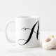 Custom, personalised modern, minimalist black and white typography script font monogram initial and name template coffee cup mug gift.