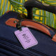 Easily change 'CRAFT' to any other word and personalize tag on back using the simple Template provided. This is a 2"x3.5" (standard business card size) quality, sturdy and weatherproof luggage tag for yourself or thoughtful gift for a special crafting friend. The background is lavender. A slightly larger single-sided tag with card slot on back is also available.