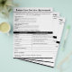 Designed with both simplicity and sophistication in mind, this form is a valuable tool for presenting your terms clearly to clients. The layout allows you to outline essential elements such as the scope of services, payment methods, and terms and conditions, ensuring there’s no ambiguity about what your business offers. This ensures mutual understanding between you and your clients, promoting trust and professionalism. The black-and-white colour scheme adds a timeless, professional touch that works well for both digital and printed formats, allowing for easy distribution and convenient use.