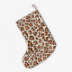 Chic, modern, pretty wild animal big cats leopard print stocking in brown, tan, and cream with a brown stripe and white edged with brown banner you can personalise with a monogram initial and name.