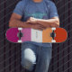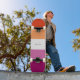 Beautiful and modern orange, white and purple coloured block stripes pattern design (the lesbian flag colours). Add name of your choice to customise this skateboard.