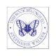 A book stamp makes a thoughtful personalised gift. Perfect for any book lover, teacher, professor, librarian and it would be a great graduation gift. This stamp design features a butterfly illustration with two sections of text around a circle, the top text (this book belongs to) with a name underneath but you can specify any wording as long as it fits within the space. You can customise further by choosing an alternative font but not all fonts will be suitable for this design and we recommend keeping close to the template design.