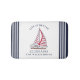 Create unique personalised nautical bath accessories for your lake house. Life is Better at the Lake saying is decorated with a sailboat illustration with red and white sails and navy blue and white stripes. Template makes it easy to personalise this nautical bath mat with your name or family name.