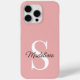 Contemporary girly cellphone case with room to customise with name, monogram, or initials of your choice on a pretty dusty rose, peach blush pink coloured background. Beautiful, modern, and cool cover for the trend-savvy and art-loving hip trendsetter, artsy motif lover who wants to protect their phone from dust and dirt, wear and tear. This design is available in Apple iPhone 6, 7, 8, 10 or X, XR, XS, 11, 12, 13 Mini, 14, 15 Plus, and Pro Max cellphone cases. Show off your style, look fashionable trendy, and feel stylish with a unique design on a mobile device accessory of your choice.