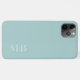 Contemporary light mint green coloured monogram cellphone case. With room to customise with a name monogram, or initials of your choice. Beautiful, modern, and cool cover for the trend-savvy and art-loving hip trendsetter, artsy motif lover who wants to protect their phone from dust and dirt, wear and tear. This design is available in Apple iPhone 6, 7, 8 Plus, 10 or X, XR, XS, 11, 12, 13 Mini, 14, 15 Plus, and Pro Max cellphone cases. Show off your style, look fashionable trendy, and feel stylish with a unique design on a mobile device accessory of your choice.