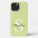 Contemporary girly cellphone case with room to customise with name, monogram, or initials of your choice on a pretty light summer chartreuse lime green yellow coloured background. Beautiful, modern, and cool cover for the trend-savvy and art-loving hip trendsetter, artsy motif lover who wants to protect their phone from dust and dirt, wear and tear. This design is available in Apple iPhone 6, 7, and 8 Plus, 10 or X, XR, XS, 11, 12, and 13 Mini, 14, 15 Plus, and Pro Max cellphone cases. Show off your style, look fashionable trendy, and feel stylish with a unique design on a mobile device accessory of your choice.