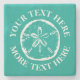 Custom limestone coasters with sand dollar shell. Elegant gift idea for friends, family, couple, coworker, boss and others. Classy Birthday present for him or her. Stylish script typography. Also great as table decor for beach wedding party. Turquoise or custom colour. Thick square coaster available in different materials like sandstone, marble and travertine.