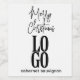 This elegant custom holiday bottle label features simple black and white design. A sample logo is featured in the centre which you can personalise to include your own company or business logo, or other custom image. The greeting "Merry Christmas" is printed at the top in a script font. The type of wine or beverage is printed at the bottom.