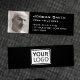 Modern, black or any colour mini business cards with your custom photo, logo, name, title/company name and contact information. Change colours and fonts, move and resize elements with the design tool. Template photo by Chepe Nicoli