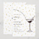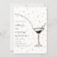 Elegant and novelty invitation card for a cocktail-themed party. The design features a chic martini glass illustration with shimmering gold glitter accents on a clean white background, perfect for upscale events and celebrations.