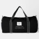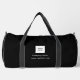 Custom black logo, company, business, minimalist duffel bag. Your can personalise it with your logo, name and website. Simplistic design. Minimalist. Professional website.