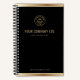Elevate your brand with this sophisticated corporate notebook. Featuring a sleek black cover with a custom logo and company name in elegant gold print, this notebook exudes professionalism and style. The design is clean and minimalist, with subtle gold ribbons adding a touch of luxury. This high-quality notebook is perfect for taking notes, brainstorming ideas, and making a lasting impression.