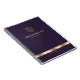 This elegant custom notebook design features a deep, luxurious plum purple background, accented with a shimmering gold horizontal band at the base. Your personalised logo and company information are beautifully highlighted in a rich gold tone, creating a sophisticated and distinguished branded aesthetic.