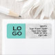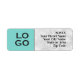 These professional custom return address labels feature a business or company logo on the left, with the address and location on the right. The background is an aqua or teal colour beneath the logo, and white marble with silver veins on the right.