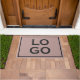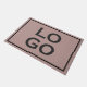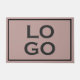 This sophisticated and professional custom welcome mat features a dusty pink or blush colored background with a black frame. A sample logo is placed in the center. You can personalize the mat and add your own custom company or business logo.