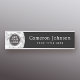 Hanging name plate with your custom logo on a printed image marble look backround and template fields for your name and title or company name.