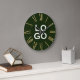 This simple yet sophisticated custom wall clock features a dark forest green colored background with a sample company of business logo placed in the center. You can personalize the clock to add your own company or business logo, or other custom image. The hours are printed in a gold foil design, Roman numeral pattern.