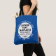 Custom personalised promotional All Over Print CHELSEA BLUE Shoulder Tote Bag, 16" high x 16" wide and 28" long strap, made of 100% sturdy brushed polyester exterior, 100% polyester nonwoven laminate interior, black laminated lining for extra support, and with cotton web handles. Spot or dry clean. Made in the USA. WHITE customisable curved text template surrounding your own uploaded photo, logo, image, and with CHELSEA BLUE #034694 background mask behind text that frames your image upload for fully optimised customisation. Make, create your own customised design Tote bags with easy personalised arched, circular, round, text wrap.