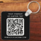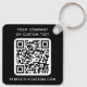 Double sided keychain with your custom logo, QR code and custom text on a black or custom color background. Change fonts and font colors, move and resize elements with the design tool.