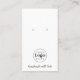 The front of the card features a clean, minimalist layout with fully customisable text and logo placement, allowing you to showcase your business name, tagline, or signature phrase such as “handmade with love.” The earring holes are simulated in the artwork, serving as a precise visual template for placement.