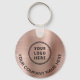 Modern promotional keychain for your company or organisation with a brushed rose gold faux metallic background. Add your logo, input your website's URL address to create a scannable QR code and add two lines of custom text, such as your company name, business slogan, thank you, etc.