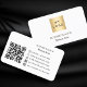 White background. Personalise and add your business logo, name, title and contact information. Add your website url/link to the Qr code. With Facebook and Instagram icons. Black text and icons