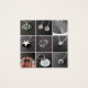 Jewellery business square dangle, drop, wire, or stud earring display cards in a modern, simple, and minimalist black and white design with a logo, the business name, website, social media icons and handle on the front, and a custom photo on the back. Personalise it with any colour for the background by clicking the button to edit the design. Features punch hole marks or cut lines. Change the font, colours, and add your address or phone number too if needed.