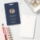 Enhance your corporate security with our Custom Logo Staff Photo Identification Badge. Featuring a customisable employee photo, name, and title on the front, along with your logo, this badge exudes professionalism and functionality. The back offers space for company name and address if lost or found, or personalised text, providing comprehensive identification for your staff. With a sleek navy blue background and grey classic typography, this badge offers a modern, minimalist design suitable for any business environment. Elevate your corporate branding and security measures with our customisable ID badge solution.