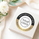 Stickers featuring your custom logo surrounded by a black and golden look (printed image with a brushed metal effect simulated in the artwork) border. Ciustomizable text top and bottom. Move and resize the logo with the design tool. Text, font and font colours are customisable. A great way to create personalised stickers for your business or event