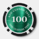 Personalise these faux green metal poker chips with your business logo in the front and your own text on the back. It includes a 100 value denomination to be used for playing in a casino night, and it can be edited with any value amount.