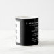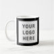 Use this plain, simple, minimalist mug as your business card. Featuring your logo on one side of the mug, and three blocks of white text to the right of the logo, all on a black background. Upload your square or round logo. Update the blocks of text with your company name, your slogan or tag line, and company information.
