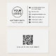 White or custom colour, modern, elegant and professional business card design with template fields for name, company name/title, logo (photo or other graphic) and contact information including social media icons and website URL. Add your own QR code to the back. Change background colour, move and resize elements with the customisation tool.