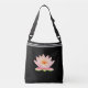 Three Lines & Custom pink Lotus Flower on black Tote Bag.