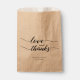 Introducing the Custom Love and Thanks Script Wedding Treat Favour Bag! These personalised kraft favour bags are the perfect addition to your sweet table, allowing you to treat your guests with a thoughtful and memorable gift.