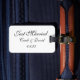 Custom luggage tag is shown in a black and white style with Just Married text.