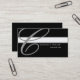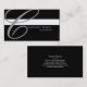A black background with a white stripe. Replace the large "C" with the first letter of your company's name for a custom look. All of your contact information is on the back of the card. Font and font size and colour can be changed.