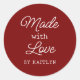 Customisable "Made with Love" sticker in dark red. Just add your name.