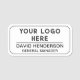 Create branded logo plastic employee name tags, and choose from a safety pin back OR a magnetic back name tag. Use the simple design tool to replace this logo placeholder with your own logo, and add your name and job title. Customise further with the simple design tool. Change font styles, or colour of fonts. This version features a black border with rounded corners.