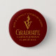 This modern custom maroon veterinary medicine school graduation party button features the college graduate name in elegant gold script for the class of 2024. Customise with your university under the veterinarian medical caduceus for a great graduation gift or DVM name tag.