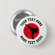 Custom martial arts karate kick silhouette buttons. Printed Birthday party favor gift idea for kids, children, instructor, martial arts teacher, trainer, coach, friend, team, sports club etc. Personalized text and customizable background color. Add personalized name, school name, funny ninja quote, slogan or monogram. Red hot rising sun with silhouette of fighter kicking. Also great for other Asian fight sports like ju jitsu, taekwondo, judo, aikido, kickboxing, jiu jitsu, muay thai etc. Round shape. Change quantity to get the cheap bulk discount price.