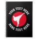 Custom martial arts karate kick silhouette lined notebook. Printed Birthday party favour gift idea for kids, children, instructor, martial arts teacher, trainer, coach, friend, team, sports club etc. Personalised text and customisable background colour. Add personalised name, school name, funny quote, slogan or monogram. Red hot rising sun with silhouette of fighter. Also great for other Asian fight sports like ju jitsu, taekwondo, judo, aikido, kickboxing, jiu jitsu, muay thai etc. Round shape. Change quantity to get the cheap bulk discount price. Personalised school and office supplies.