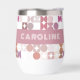 This elegant tumbler is designed to elevate your sipping experience. The tumbler showcases a delightful contemporary mauve taupe, coral red, blush pink, violet purple, and white coloured geometric mosaic pattern on a white background. The intricate circles and half circles create a whimsical and cheerful vibe. Whether you’re enjoying a chilled white wine or a cosy mulled red, this tumbler has you covered. Sip elegantly wherever you go. While perfect for wine, this tumbler also accommodates other beverages like tropical Pina Colada or other cocktails, juices, or even hot cocoa. It’s a versatile addition to your drinkware collection.