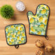 Custom Mediterranean Summer Lemon Fruit Pattern Oven Mitt & Pot Holder Set