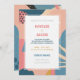 personalised wedding flat invitation thick, Two Unique Beautiful Chic Modern, Vintage Memphis Style pretty design, Abstract Patterns miami retro funny, teal turquoise gold blush peach, pink coral rose faded apricot, charcoal black