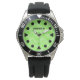 Custom men's watch with neon green pixelated dial. Personalised mosaic pattern watch for ladies. Trendy modern fashion print with custom name or stylish monogram. Cool Birthday or Christmas gift idea for men and teen boys. Make your own for dad, husband, brother, son, boyfriend etc. Background colour can be changed. Digital typography template for name or monogram.
