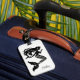 Custom luggage tag is shown in a black and white fancy mermaid print and has a card slot on the other side.