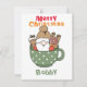 Custum text funny Santa in a an adorable polka dots mug white and green note card. Modern funny cute watercolor Chirstmas card for kids.