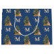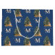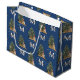Custom Merry Christmas Monogram Tiger & Tree Blue Large Gift Bag
