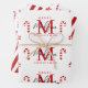 Custom Merry Christmas Red Candy Cane Monogram Wrapping Paper Sheet